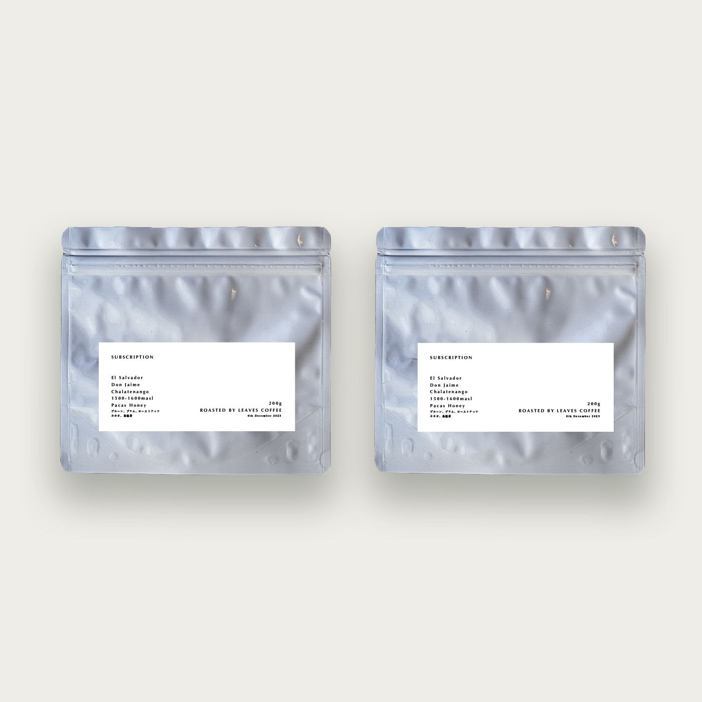 登録者だけが楽しめるメンバー限定のオリジンを1種類と、デイリーのラインナップからその時の旬なオリジンを1種類選定いたします。豆の量は、LEAVES COFFEEの店舗でも使用しているオリジナルレシピで、1日1杯ずつ30日間楽しめる様に200g × 2種類で計400gをお届け。途中で解約したい場合や、一時停止も、月末の締め切りまでは変更が可能です。